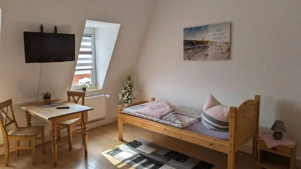 Unsere gemütlichen Ferienwohnungen bieten den idealen Rückzugsort für Feriengäste, Familien und ist ebenso bestens für Monteure geeignet. Freuen Sie sich auf zwei separate Schlafräume, die mit jeweils zwei getrennt stehenden Betten für eine erholsame Nachtruhe sorgen.