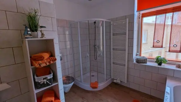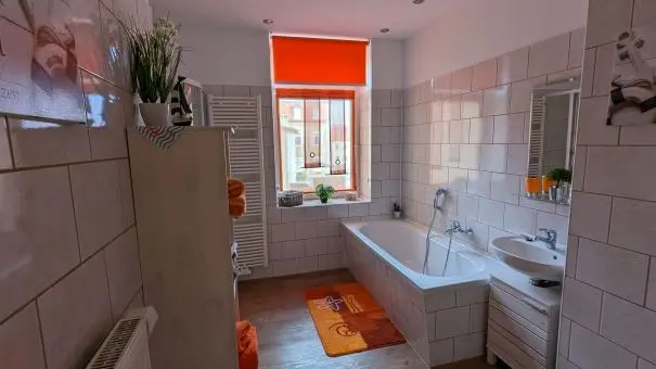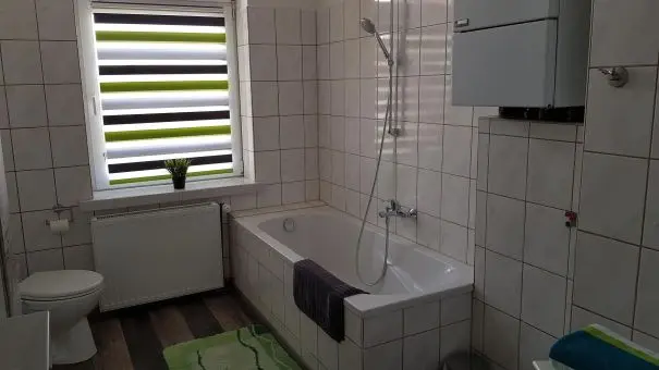 Das Herzstück der Wohnung ist die großzügig gestaltete und komplett eingerichtete Einbauküche. Hier finden Sie alles, was Sie für die Selbstversorgung benötigen, sowie gemütliche Sitzgelegenheiten, die nicht nur zum Essen, sondern auch zum gemeinsamen Verweilen einladen. Das freundliche Badezimmer ist sowohl mit einer Badewanne als auch mit einer Dusche ausgestattet – perfekt, um den Tag entspannt ausklingen zu lassen.