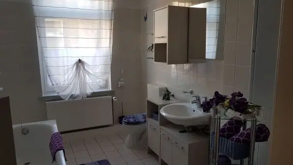 Das Herzstück der Wohnung ist die großzügig gestaltete und komplett eingerichtete Einbauküche. Hier finden Sie alles, was Sie für die Selbstversorgung benötigen, sowie gemütliche Sitzgelegenheiten, die nicht nur zum Essen, sondern auch zum gemeinsamen Verweilen einladen. Das freundliche Badezimmer ist sowohl mit einer Badewanne als auch mit einer Dusche ausgestattet – perfekt, um den Tag entspannt ausklingen zu lassen.